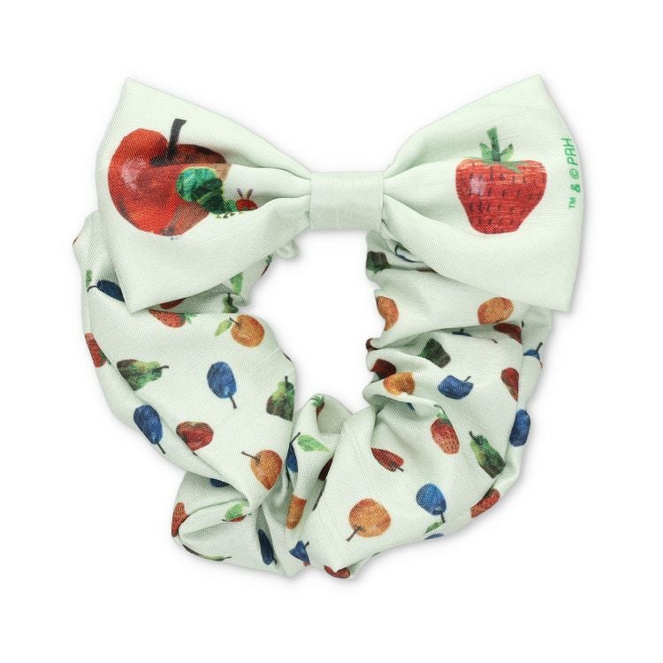はらぺこあおむしのフルーツデザインが可愛いリボンシュシュです。