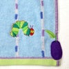 タオルの右下に施されたはらぺこあおむしとフルーツの刺繍がポイント♪大きなバスタオルは小さなお子様のタオルケット代わりに使用してもいいですね。