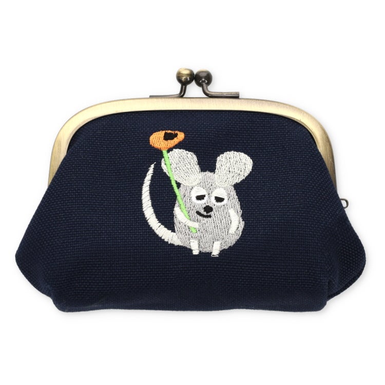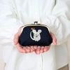 コロンとしたフォルムとデザイン刺しゅうがかわいいがま口ポーチ♪