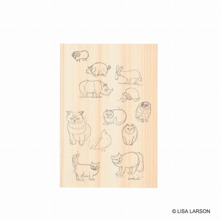天然木のやさしい質感に、今回初公開となるリサ・ラーソンのスケッチをあしらった特別なポストカードです。