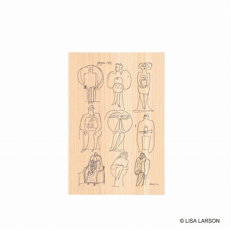 天然木のやさしい質感に、今回初公開となるリサ・ラーソンのスケッチをあしらった特別なポストカードです。