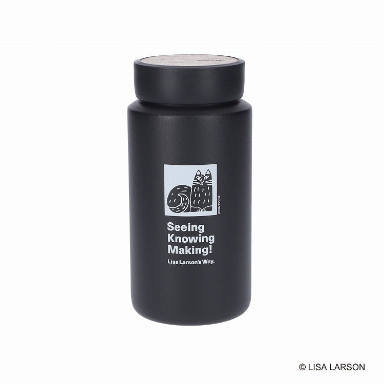 ドリンクウェアブランド「リバーズ」とコラボレーションした、猫のチャーリーをあしらったボトル。ボディにはリバーズ初の持続可能なリサイクルステンレス材を使っています。蓋はアカシアの天然木です。家具のような素敵なボトルです。