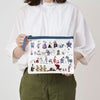 ムーミン80周年を記念した、キャラクターがいっぱいのにぎやかなデザインのフラットポーチです。