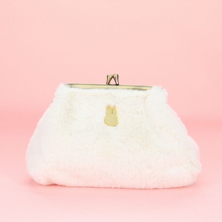 ミッフィーのかわいいワンポイントパーツ付きのがま口タイプのポーチです。