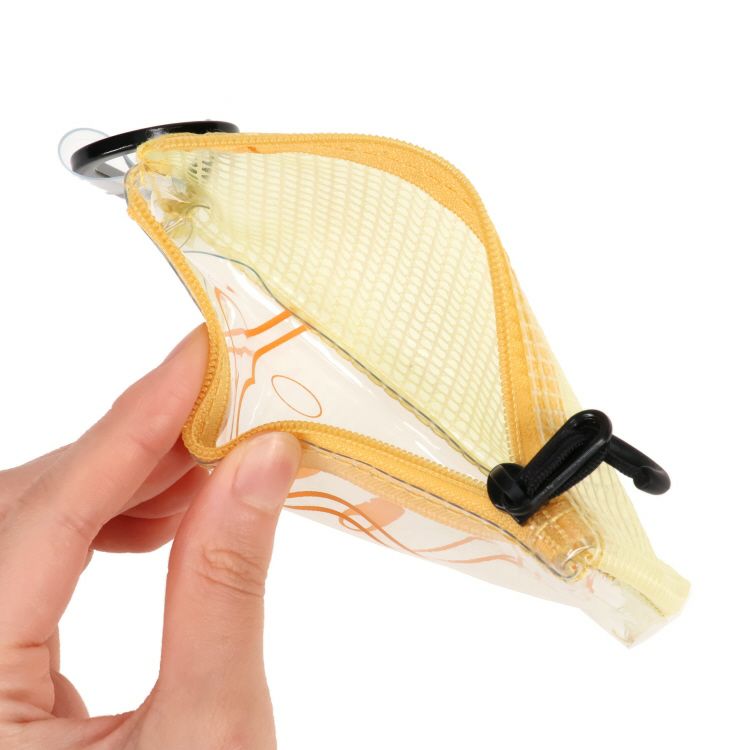 中身が見えるので使いやすく、カラビナ付きでリュックなどにぶら下げることも可能です。